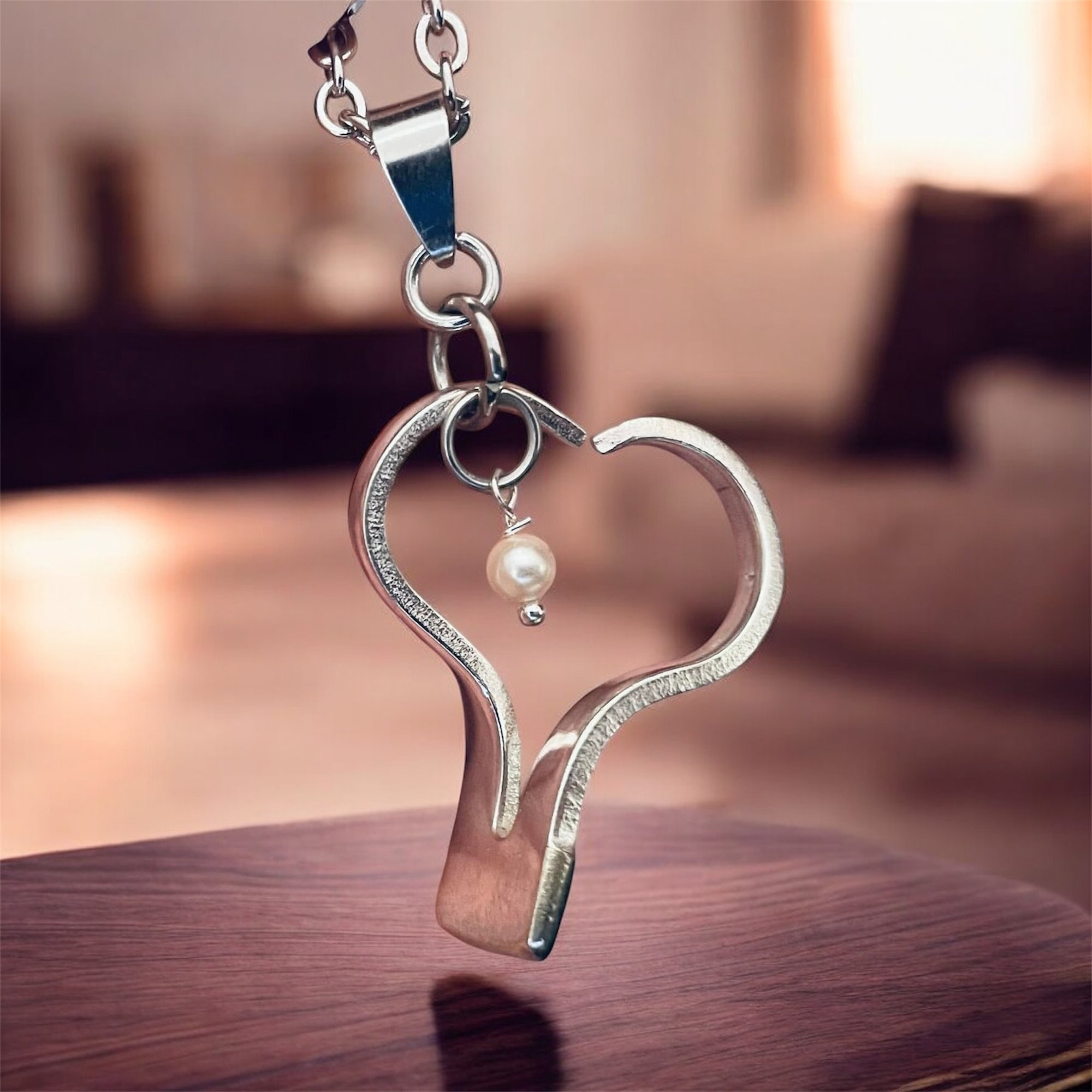 Heart designed with two tines of a vintage silverplate fork. Displayed with a 24” stainless chain.